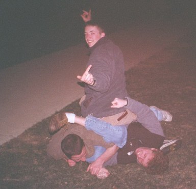 This guy did shirtless push ups for a peice of pizza. The bus driver wouldn't let anyone get on the bus untill he was finished.